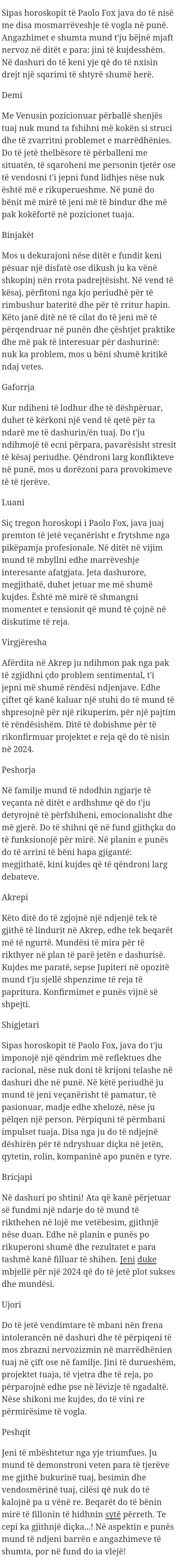 Do ta zbuloni në rreshtat e mëposhtëm, duke lexuar parashikimet astrologjike të marra nga horoskopi i Paolo Fox, astrologut shumë të ndjekur në Itali, një përkthim ekskluziv nga noa.al marrë nga revista DiPiu.