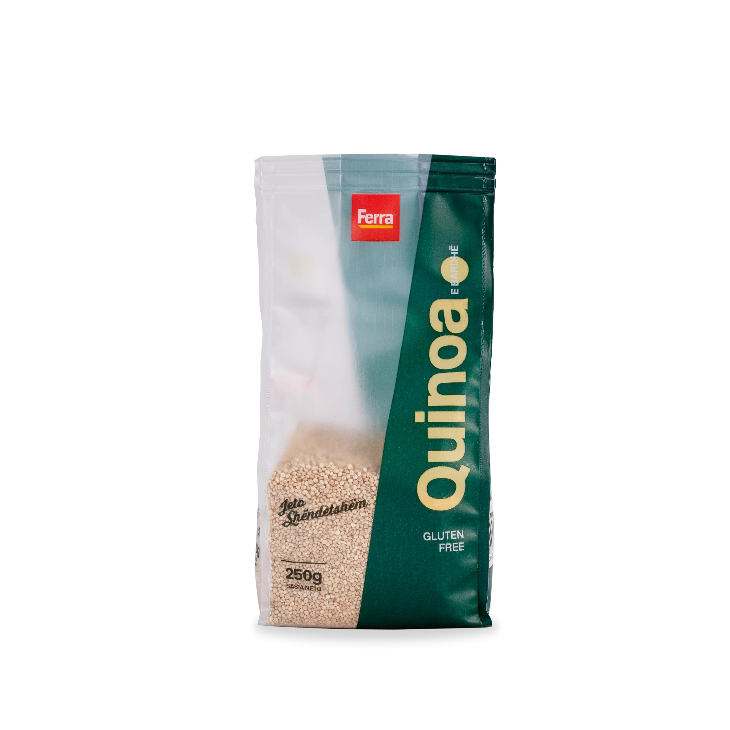 2 gota me Kuinoa Ferra 4 gota ujë 1 filxhan domate qershi 1/2 filxhan djathë 1/2 filxhan majdanoz 1 spec të kuq 1 kastravec 1 lugë gjelle lëng limoni 2 lugë vaj ulliri 3/4 lugë çaji kripë, për shije