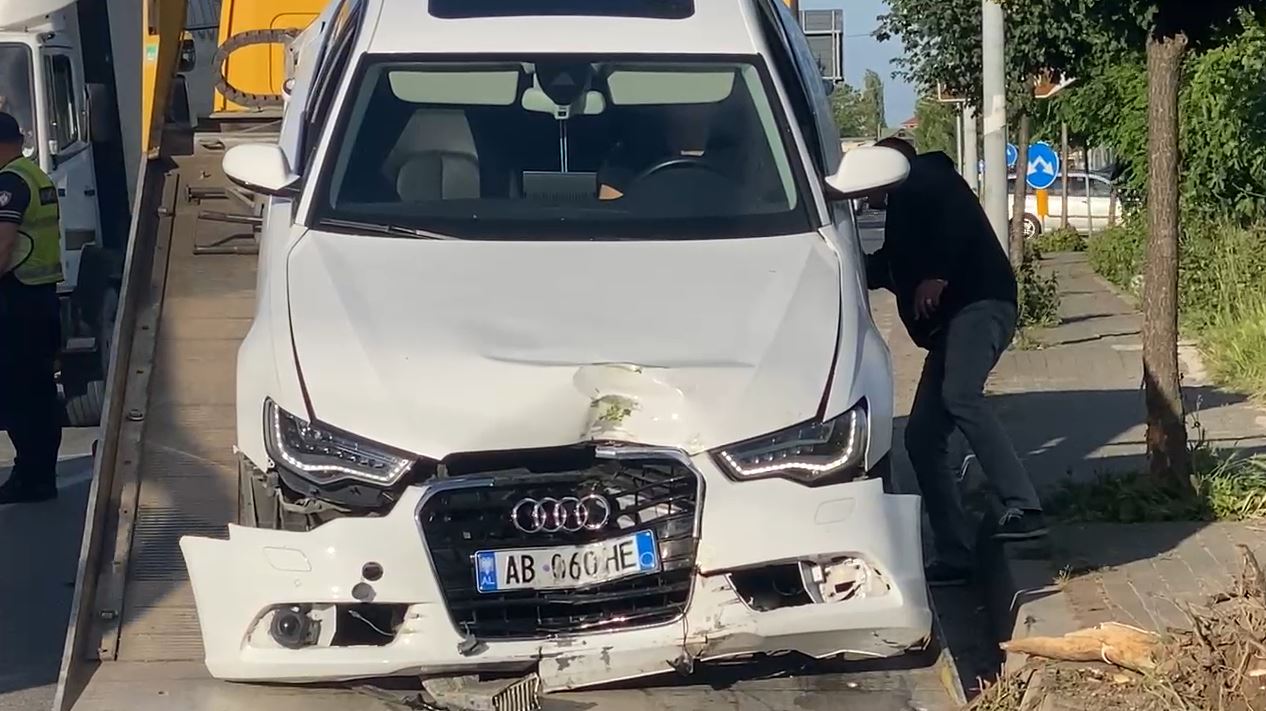 Një automjet ‘Audi’ është përplasur me shtyllën e ndriçimit të rrugës, por fatmirësisht nuk pati persona të lënduar.