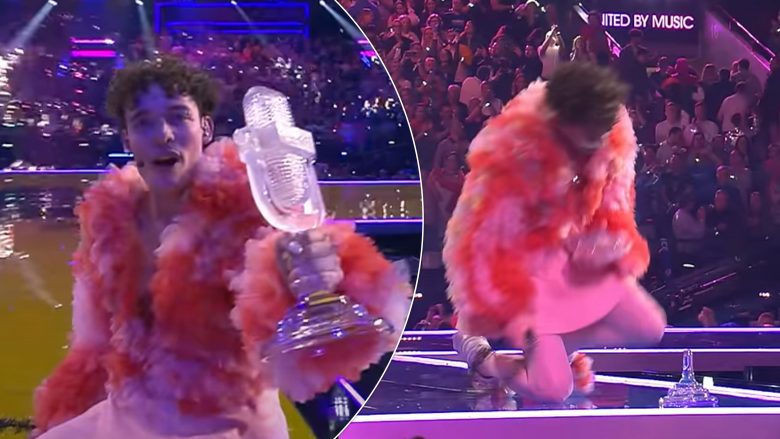 Fituesi i Eurovizionit Nemo theu trofeun e tij vetëm pak minuta pasi u kurorëzua fitues i konkursit të këngës, gjatë finales të së shtunës.