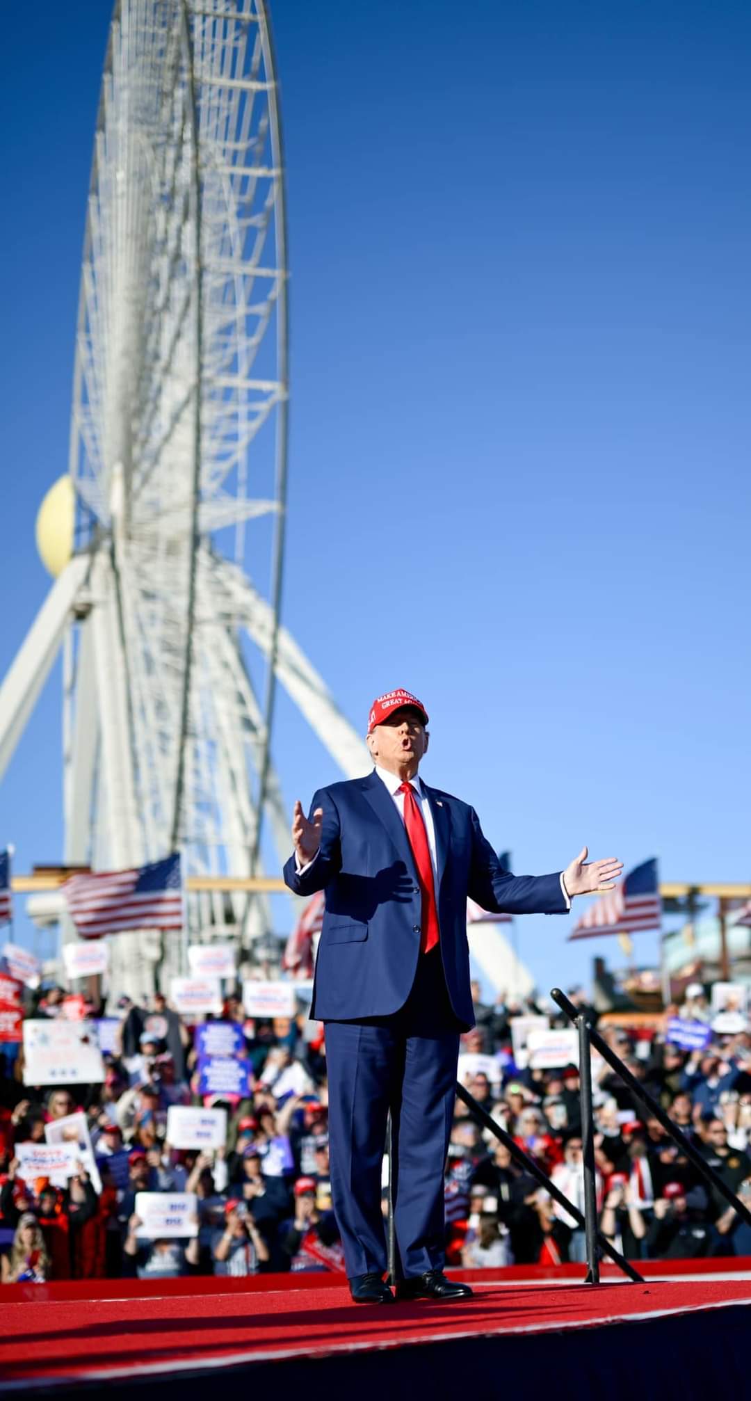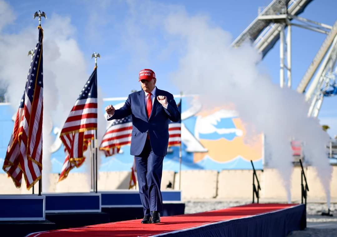 Duke e cilësuar presidentin demokrat si një "idiot komplet", Trump përpara një turme prej dhjetëra mijërash i karakterizoi në mënyrë të përsëritur rastet kundër tij si të motivuara politikisht dhe me qëllimin për të dëmtuar aftësinë e tij për të bërë fushatë.