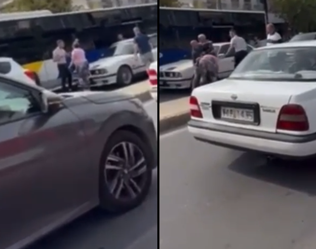 Më pas për një arsye të panjohur drejtuesit e dy mjeteve kanë nisur të bisedojnë dhe nga njëra veturë kanë zbritur tre persona të cilët janë nisur drejt çiftit.