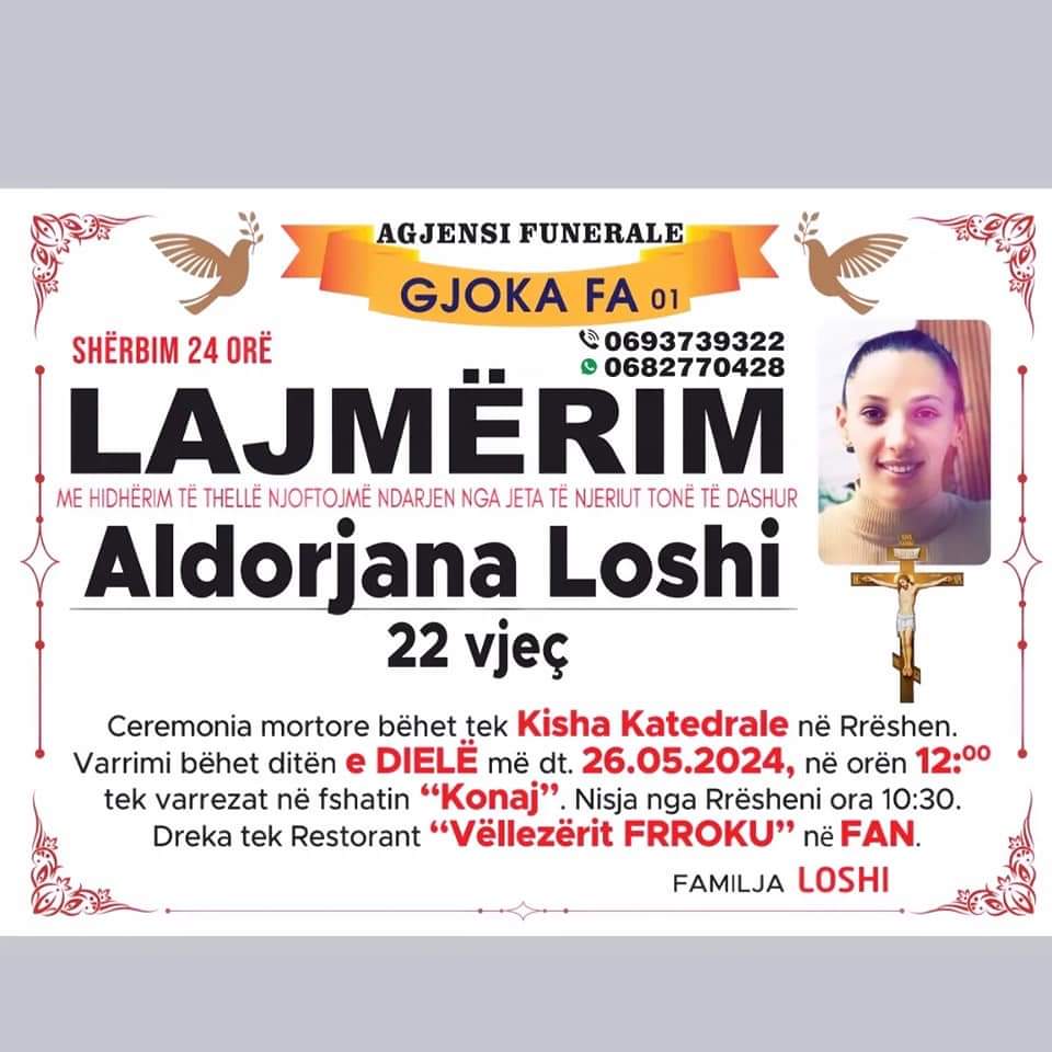 I riu dyshohet se ditën e djeshme ka shkuar në banesën e Aldorjana Loshit dhe pasi ka njoftuar Policinë për ngjarjen e ndodhur, ka fshirë mesazhet me Aldorjanën në telefonin e saj.