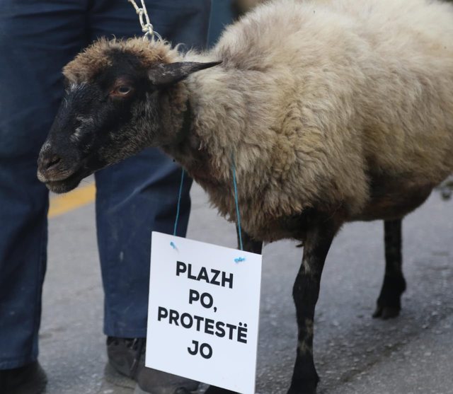 Siç shihet edhe në këto pamje në mënyrë simbolike, protestuesit kanë sjellë edhe disa dele.