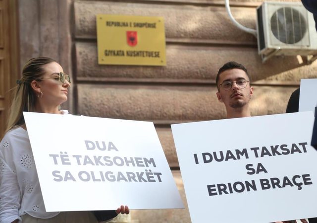 Disa qytetarë kanë dalë sot në një protestë përpara Gjykatës Kushtetuese, duke kërkuar shfuqizimin e ligjit për tatimin mbi të ardhurat e profesioneve të lira.