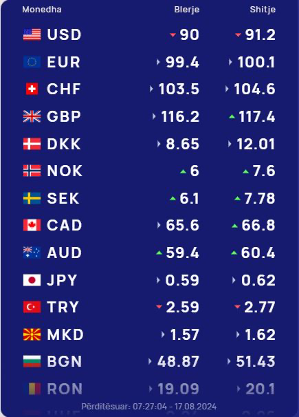 Ndërsa paundi britanik do blihet me 116.2 lekë dhe do shitet me 117.4 lekë.