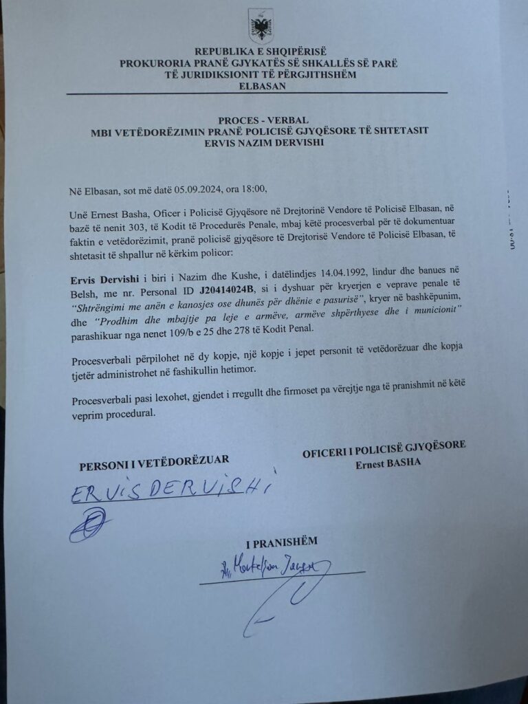 Ata dërguan pranë redaksisë së noa.al dokumentin ku provohet vetëdorëzimi ndërsa më poshtë shikoni dhe pamje të momentit kur i riu shkon në polici.