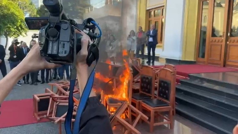 Pasi hodhën sende të forta në Kuvend, kanë nxjerrë jashtë godinës karriget e tyre dhe i kanë bërë grumbull në shkallët e Parlamentit. Menjëherë më pas i kanë vënë flakën.