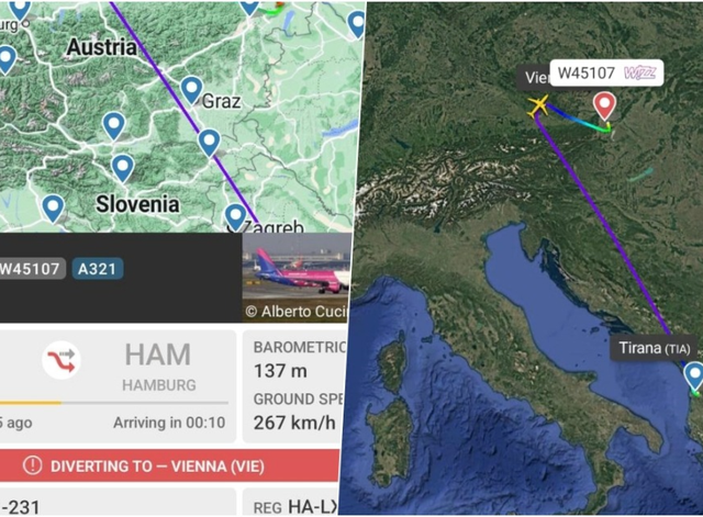 Një fluturim i linjës Tiranë-Hamburg ka devijuar nga rruga e tij dhe është ulur në Vjenë.