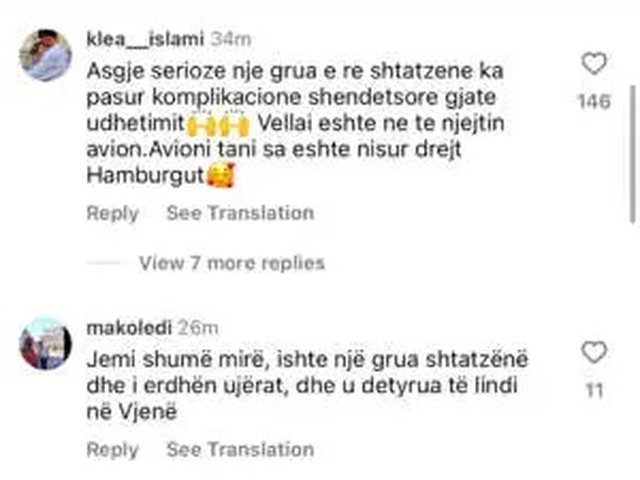 Mirëpo më vonë pasagjerët kanë njoftuar se janë mirë dhe kanë theksuar se një gruaje të re shtatzënë i kanë plasur ujërat dhe është detyruar të lindë në Vjenë.