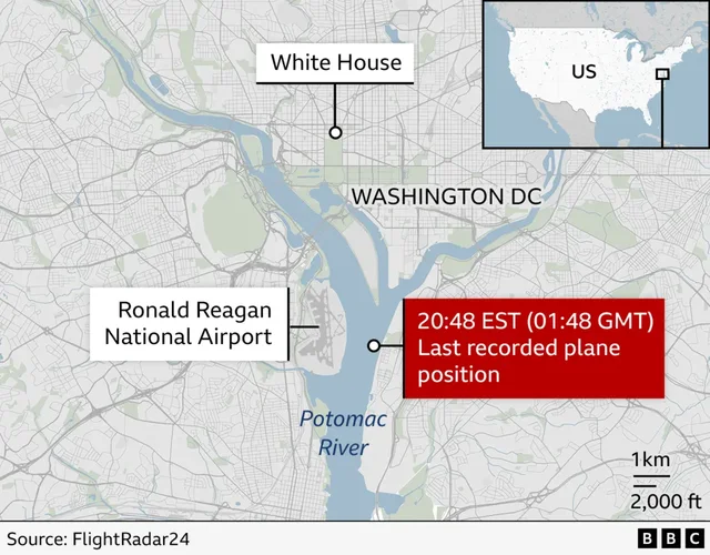 Ekipet e kërkim-shpëtimit kanë punuar gjatë natës për të pastruar ujërat në temperatura të ulëta. Aeroporti Kombëtar i Uashingtonit, Ronald Reagan është mbyllur përkohësisht pasi autoritetet hetojnë se çfarë ka ndodhur.