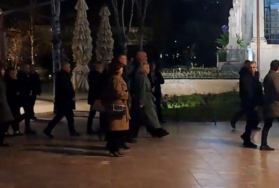 Ndryshe nga vizita e tij në mëngjes, këtë mbrëmje Rama është parë i rrethuar nga stafi i Bashkisë, duke ecur përmes sheshit Skënderbej dhe duke iu drejtuar më pas për mbledhje në Bashkinë e Tiranës.