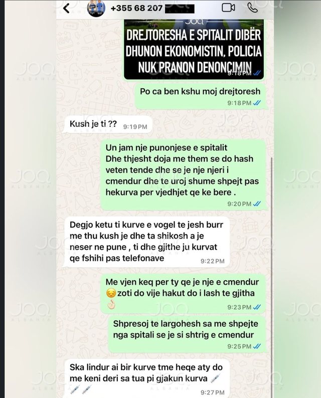 “Do t’jua pi gjakun k*rva”, i shkruan Irini Shehu, teksa shtoi se “nuk ka bir k*rve të më heqë mua nga aty”.