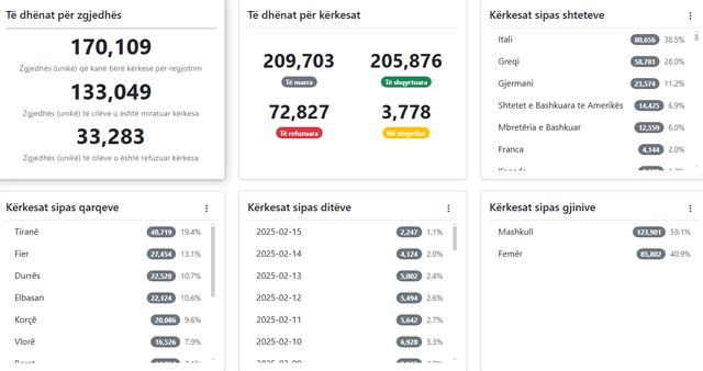 Tre shtetet që kryesojnë listën nga ku është aplikuar janë Italia, Greqia dhe Gjermania.