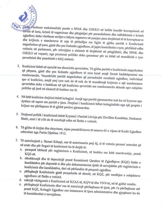 Sipas kërkesës së partive, ky koalicioni do të jetë në opozitë me shumicën qeverisëse.