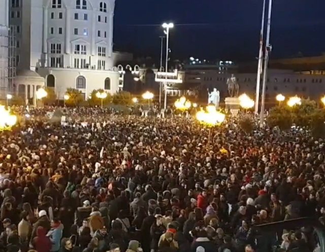 Shkup, 18 Mars 2025 – Në sheshin "Maqedonia" në qendër të Shkupit po zhvillohet një tubim qytetar në kujtim të viktimave të tragjedisë së rëndë që ndodhi në Koçan. Qindra qytetarë janë mbledhur për të shprehur solidaritetin me familjet e të prekurve dhe për të kërkuar përgjegjësi nga autoritetet për ngjarjen që ka tronditur mbarë vendin.