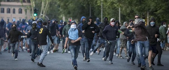 Në Ponte Milvio, policia u desh të ndërhynte në orët e para të pasdites për të shpërndarë turmën pasi ishin ndezur disa fishekzjarre, ndërsa gjatë kontrolleve të para u sekuestruan disa shkopinj në zonat përreth stadiumit Olimpik.