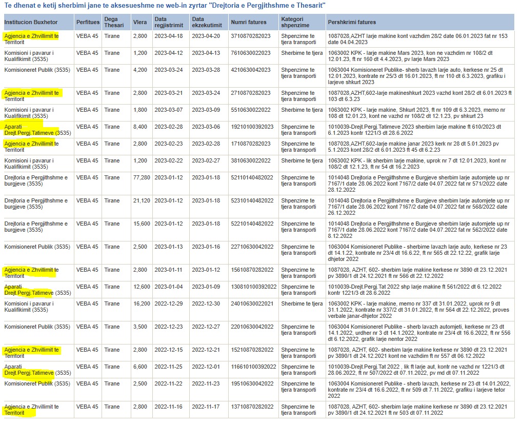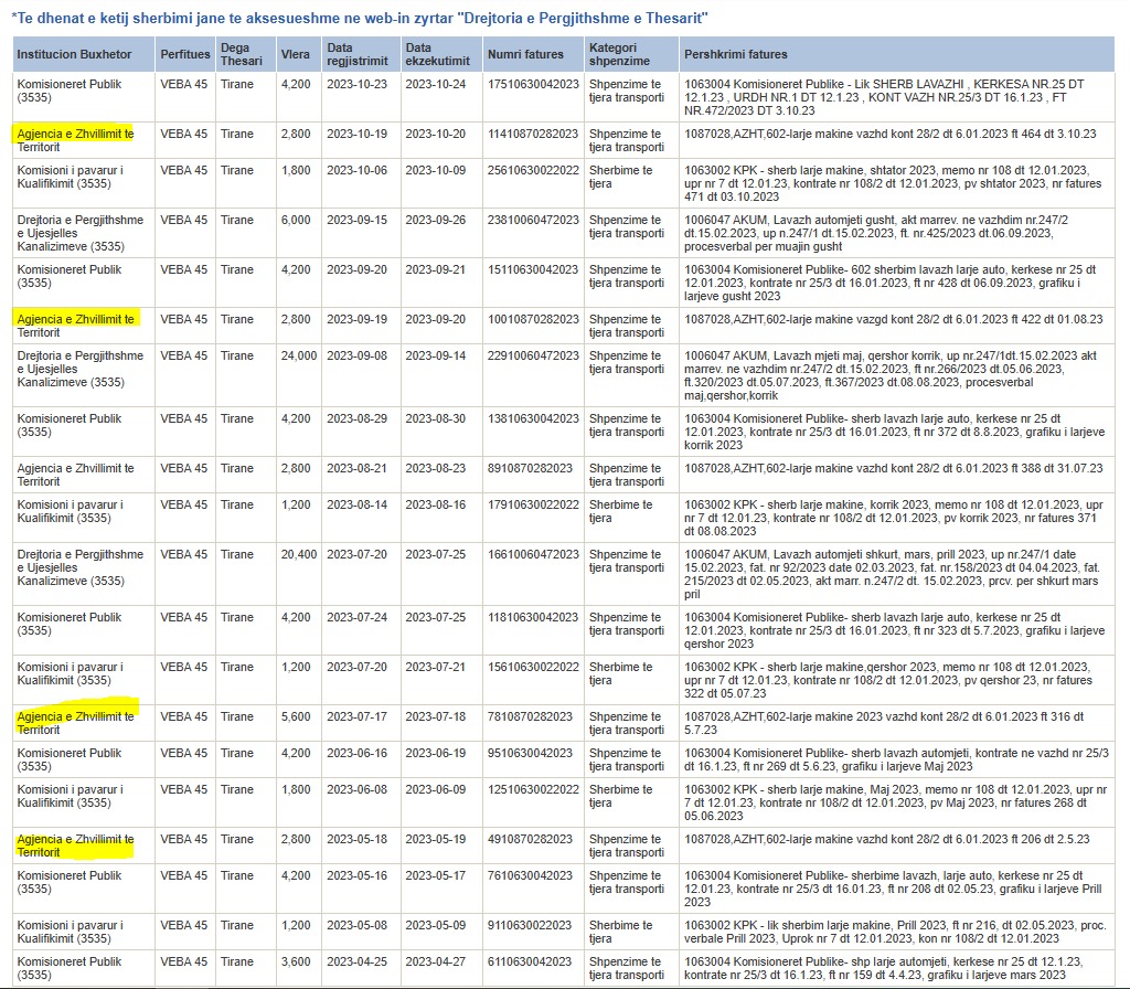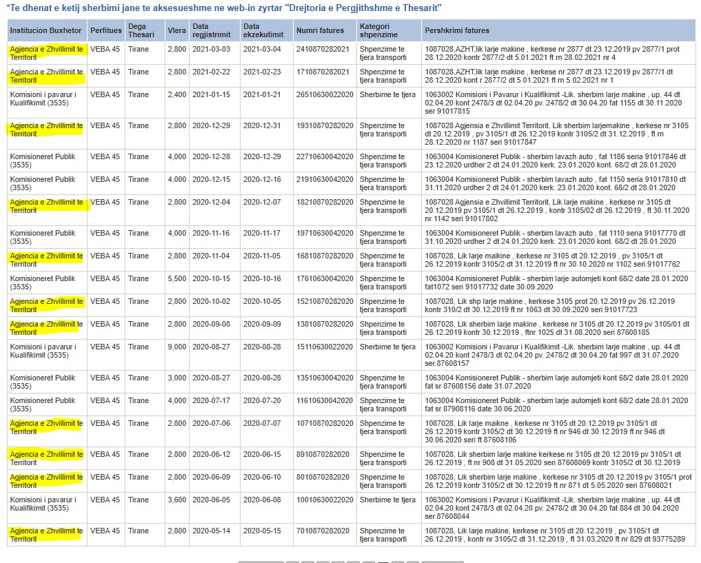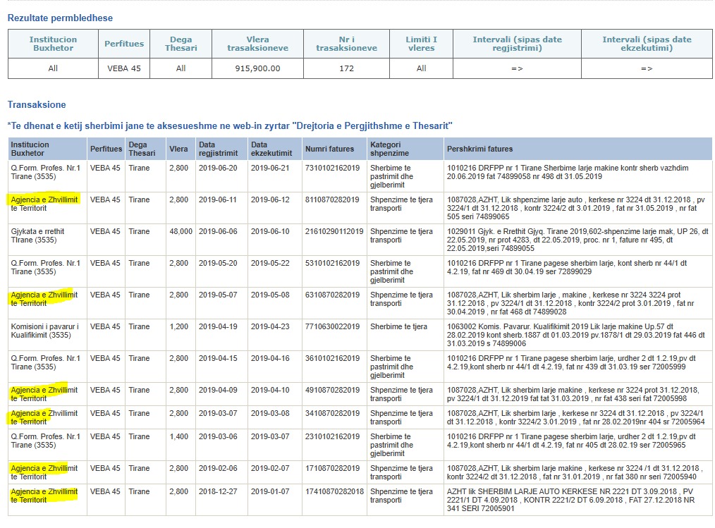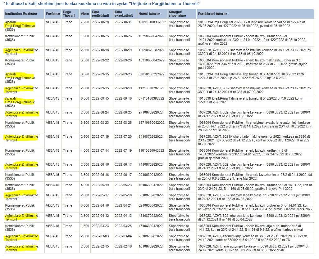 Prandaj edhe specifikimet teknike të vendosura në ftesën për ofertë të procedurës me objekt ‘Shërbim larje autovetura, tapiceri’ që do të zhvillohej në 28 Mars, i përshtateshin fiks lavazhit e parkimit të Veba 45 shpk.