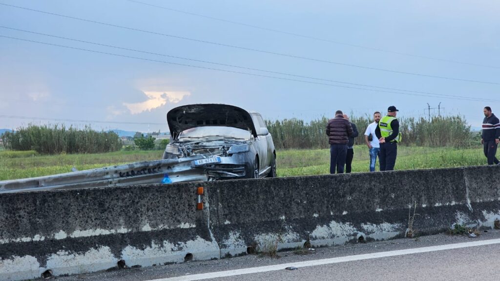 Një aksident i rëndë është regjistruar pasditen e sotme në bypass-in e Lushnjës. Raportohet se një automjet tip "Range Rover" është përplasur me barrierën e hekurt anësore të autostradës. Pas përplasjes bëhet me dije se mjeti ka marrë flakë.