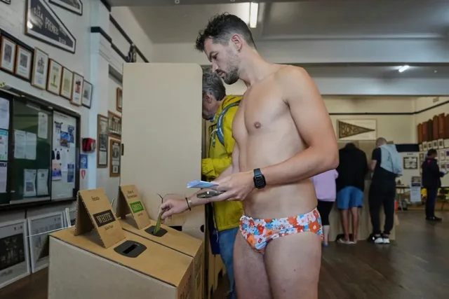AUSTRALI- Disa foto që kanë qarkulluar në interenet, ku tregojnë australianët duke votuar, por të veshur vetëm me rroba baje kanë bërë xhiro në rrjet. Sipas mediave të huaja kjo ka ndodhur në qendrat e votimit të vendosura në plazhet australiane për të ushtruar të drejtën e tyre për të votuar.