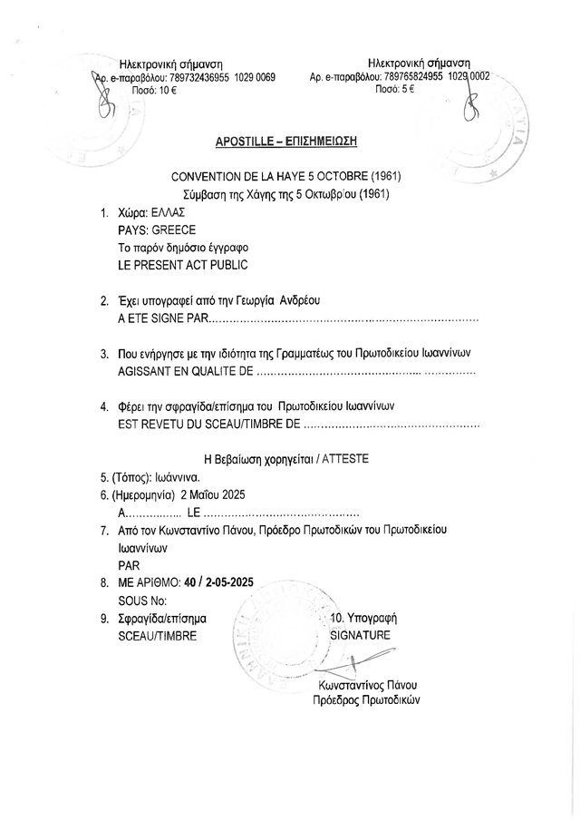… Dokument zyrtar dhe me vulë dhe me firmë nga Gjykata e Janinës së Greqisë, që tregon se; Për këto arsye e dënon të pandehurën të shpallur fajtore me burgim 3 muaj dhe gjobë 1500 euro si dhe shpenzimet gjyqësore prej 73 eurosh.