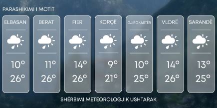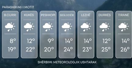 Vendi ynë këtë të mërkurë do të jetë nën ndikimin e një moti të paqëndrueshëm.