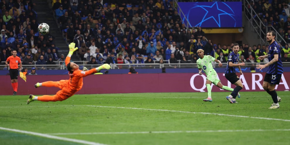 Një nga më ikoniket ishte ajo në minutën e 113-të, kur rezultati ishte tashmë 4-3 për zikaltrit. Në atë moment, Lamine Yamal çmendi edhe një herë mbrojtjen interiste dhe lëshoi një goditje të harkuar e të prerë, që dukej se po shkonte drejt “lavdisë”.