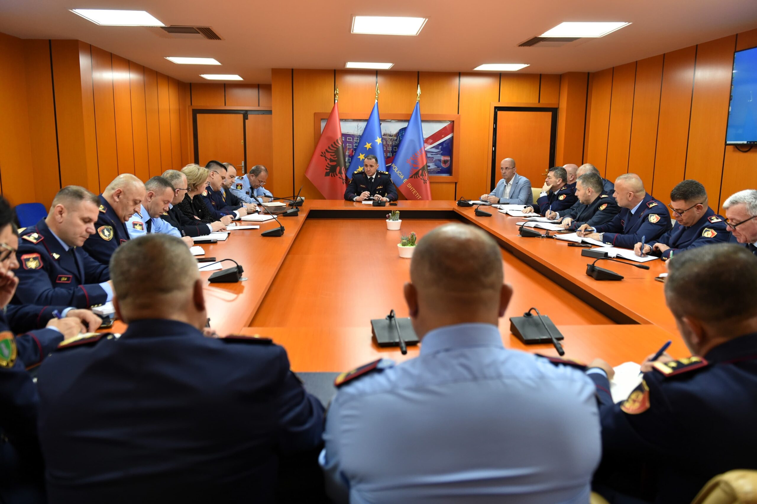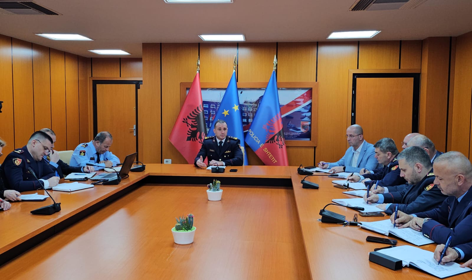 Në një takim të zhvilluar paraditen e sotme me drejtuesit vendorë të Policisë, të kufirit dhe të departamenteve qendrore, Drejtori i Përgjithshëm i Policisë së Shtetit, Drejtues Madhor Ilir Proda, dha një sërë porosish të drejtpërdrejta për përforcimin e kontrolleve dhe përmbushjen profesionale të detyrave.