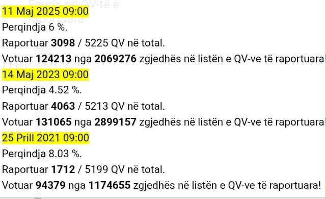 Komisioni Qendror i Zgjedhjeve ka publikuar të dhënat paraprake për pjesëmarrjen në votimet e 11 majit deri në orën 11:00.