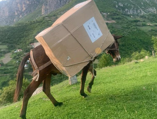 KUKËS- Në zonën malore të Zapodit në Bashkinë Kukës, fletët e votimit janë transportuar drejt qendrave të votimit me mushka. Në foto shihet se një mushkë e ngarkuar me materiale zgjedhore, në një terren të vështirë malor duke dërguar materialet zgjedhore në shkollën 9-vjeçare të fshatit Bele.