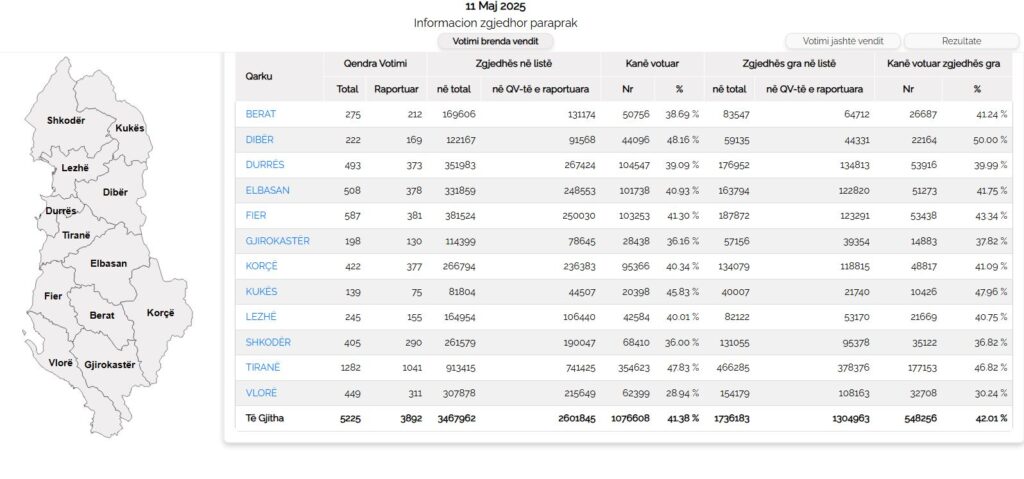 Pjesëmarrja më e lartë është shënuar në qarkun e Dibrës, me 50.00 përqind të shtetasve me të drejtë vote, që kanë votuar.