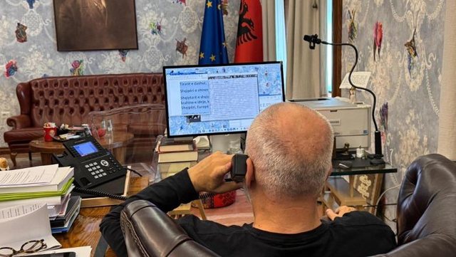Kryeministri është duke shkruar: “Tiranë e dashur, Shqipëri e shtrenjtë…”.