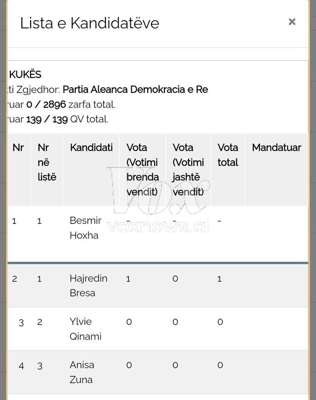 Pas numërimit të votave rezulton se ndër të tjerë, ka edhe kandidatë të cilët nuk kanë marrë asnjë votë, duke nxjerrë në konkluzion që të mos kenë votuar as veten e tyre.