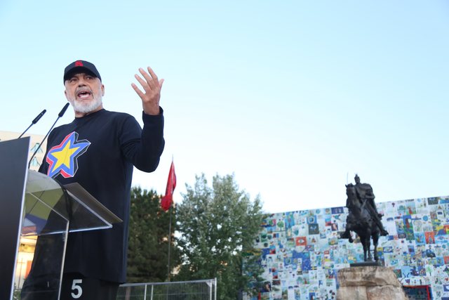 Kryeminsitri Edi Rama ka mbajtur fjalimin e fitores në zgjedhjet parlamentare të 11 majit, tre ditë pas zgjedhjeve, në një fjalim në sheshin “Skënderbej”.
