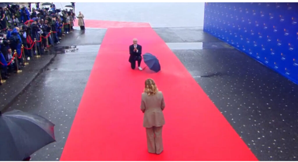 "Videoja e tregon atë të gjunjëzuar dhe me duart e kryqëzuara për të mirëpritur udhëheqësen italiane, një gjest që shumë përdorues të medias pretenduan se do ta bënte Elon Musk xheloz, duke iu referuar thashethemeve për një marrëdhënie romantike midis miliarderit të teknologjisë dhe politikanit.", shkruajnë mediat e huaja