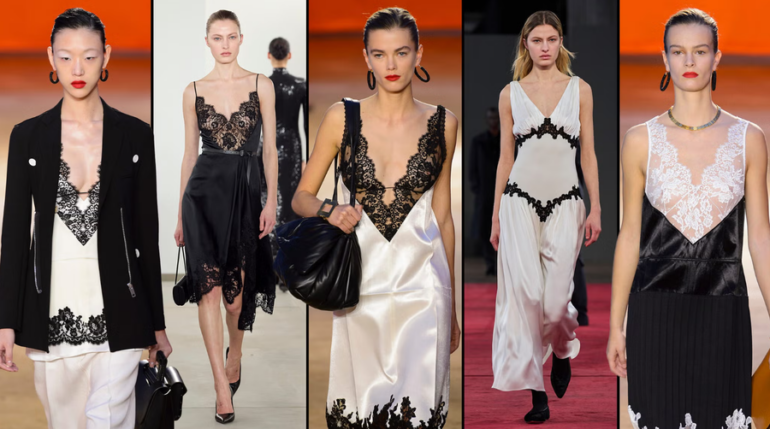 Markat si “Rabanne”, “Beaufille”, “Rohé” dhe të tjera përfshijnë shpesh dantellën në koleksionet e tyre sezonale. Motrat Olsen dhe koleksioni pranveror 2025 i “The Roë” u ranë në sy të gjithëve. Me dantellën, janë prezantuar mënyra të reja dhe origjinale për të kombinuar veshjet; ndonjëherë edhe kontraverse. Fundet me dantellë të kombinuara me çizme deri te fustanet me dantellë nën triko apo mbi pantallona.