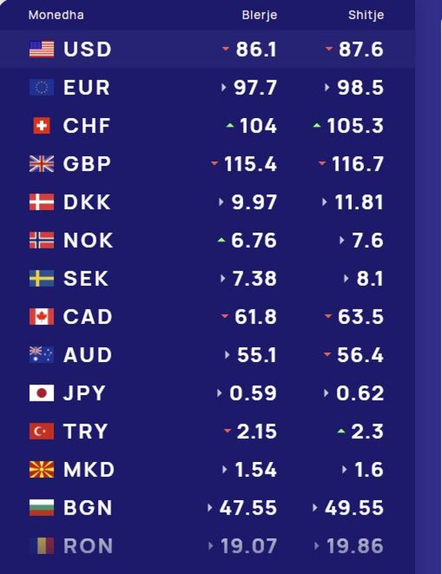 Euro do të blihet me 97.7 lekë dhe do të shitet me 98.5 lekë.