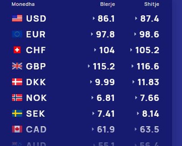 Më poshtë, po sjellim të dhënat e këmbimin valutor, për të gjitha monedhat e huaja: