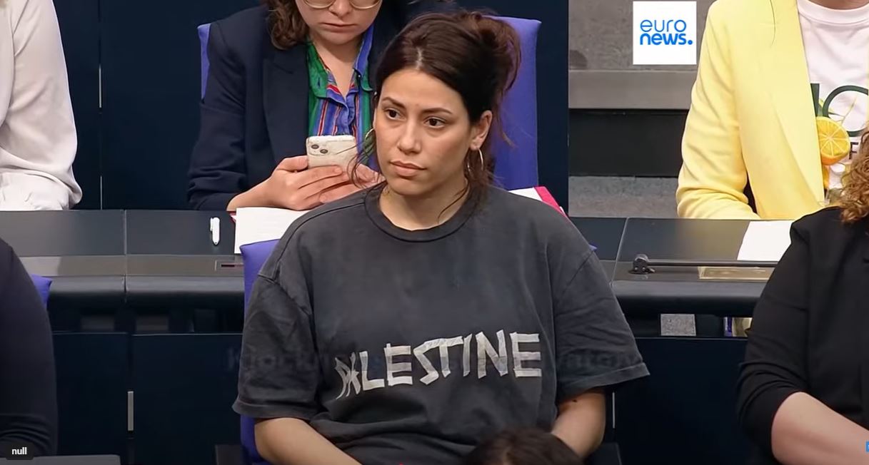 GJERMANI- Deputetja e Partisë së Majtë, Cansin Kokturk, u nxor jashtë sallës së parlamentit gjerman të mërkurën për shkak se mbante veshur një bluzë me mbishkrimin “Palestina”. Presidentja e Bundestagut, Julia Klockner, ndërhyri gjatë seancës, duke u kujtuar deputetëve se mesazhet politike në veshje nuk lejohen në sallë.
