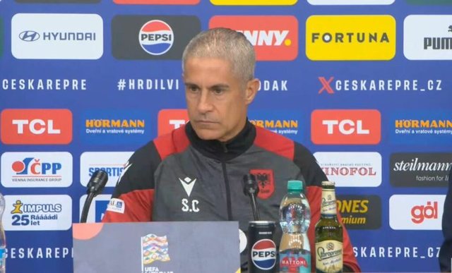 Trajneri i kuqezinjve, Sylvinho iu përgjigj pyetjeve të gazetarëve, në konferencën për shtyp, para ndeshjes që do luhet të martën.