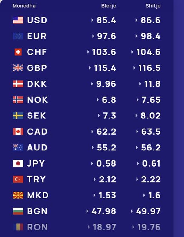 Më poshtë, po sjellim të dhënat e këmbimin valutor, për të gjitha monedhat e huaja: