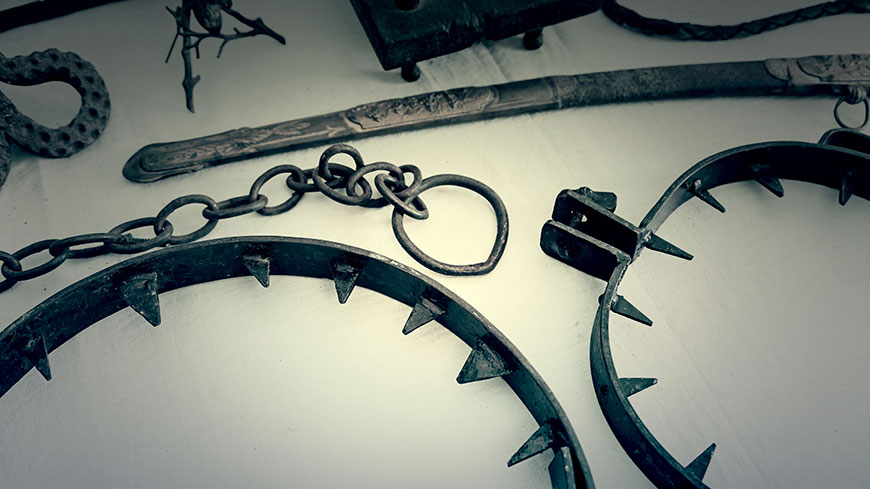 Mjete plastike ose metalike për lidhje të detyruar të trupit që shkaktojnë vuajtje