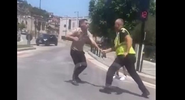 Por sipas raportimeve nga dëshmitarë të ngjarjes, fillimisht sherrin e ka nisur qytetari duke e godirut punonjësin e policisë dhe më pas ky i fundit i është kthyer duke e shtrirë në tokë.
