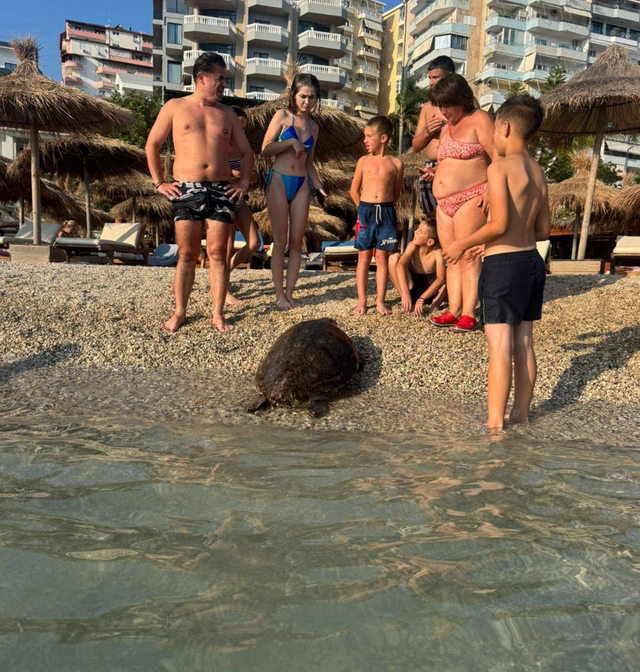 Një pamje e mrekullueshme ka ndodhur në një prej plazheve të Sarandës, ku një breshkë ka ardhur për t’u shfaqur për pushuesit. Breshka e fotografuar është një breshkë deti e llojit "Caretta caretta", e njohur ndryshe si breshka e gjelbër. Ky lloj është shumë i njohur në bregdetin shqiptar dhe shpesh herë mund të shfaqet gjatë verës, kur ato dalin në plazhe për të shtruar vezët.