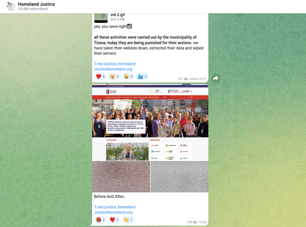 “Të gjitha këto aktivitete janë kryer nga Bashkia e Tiranës, sot ata po ndëshkohen për veprimet e tyre. Ne kemi rrëzuar faqen e tyre, kemi marrë të dhënat dhe kemi fshirë serverët,” thuhet nw mesazhin e tyre.