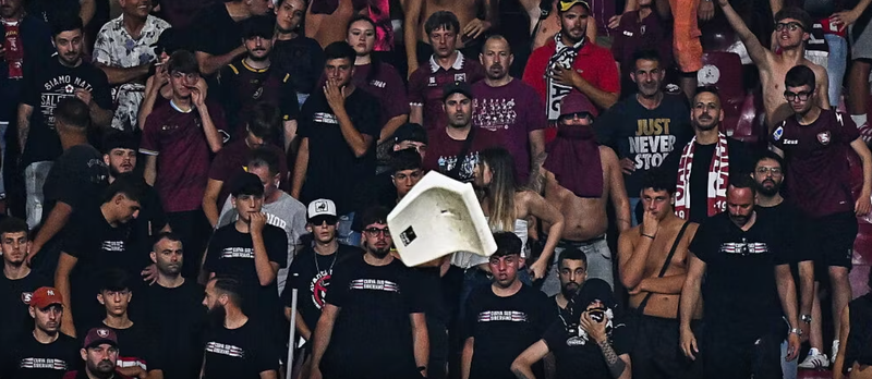 ITALI – Një skenë kaotike dhe e turpshme është regjistruar mbrëmjen e sotme në stadiumin “Arechi” gjatë ndeshjes së kthimit të play-out-it të Serie B mes Salernitanës dhe Sampdorias. Në minutën e 65-të, me rezultatin 2-0 për Sampdorian (me gola nga Coda dhe Sibilli), arbitri Daniele Doveri u detyrua të ndërpriste ndeshjen për shkak të sendeve të shumta të hedhura në fushë nga tifozët vendas.
