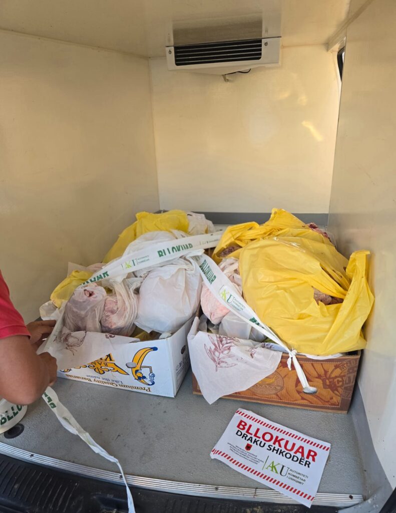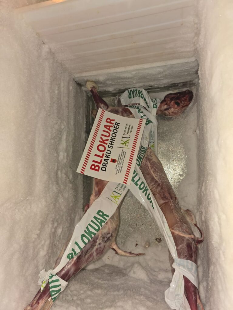 Gjatë verifikimeve në terren, trupa inspektuese e AKU konstatoi shkelje të rënda ligjore në katër subjekte me aktivitet tregtimi mishi, përfshirë mosrespektimin e kërkesave të sigurisë ushqimore, mungesën e vulës veterinare dhe të certifikatave të origjinës së produktit, si dhe ushtrimin e aktivitetit të paregjistruar në Qendrën Kombëtare të Regjistrimit (QKR).