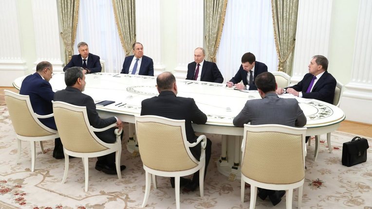 Një video e shkurtër e publikuar nga Kremlini tregon Putinin duke takuar delegacionin iranian i shoqëruar nga Ministri i tij i Jashtëm Sergej Lavrov dhe Yury Ushakov, një ndihmës i nivelit të lartë dhe ish-ambasador rus në Uashington.