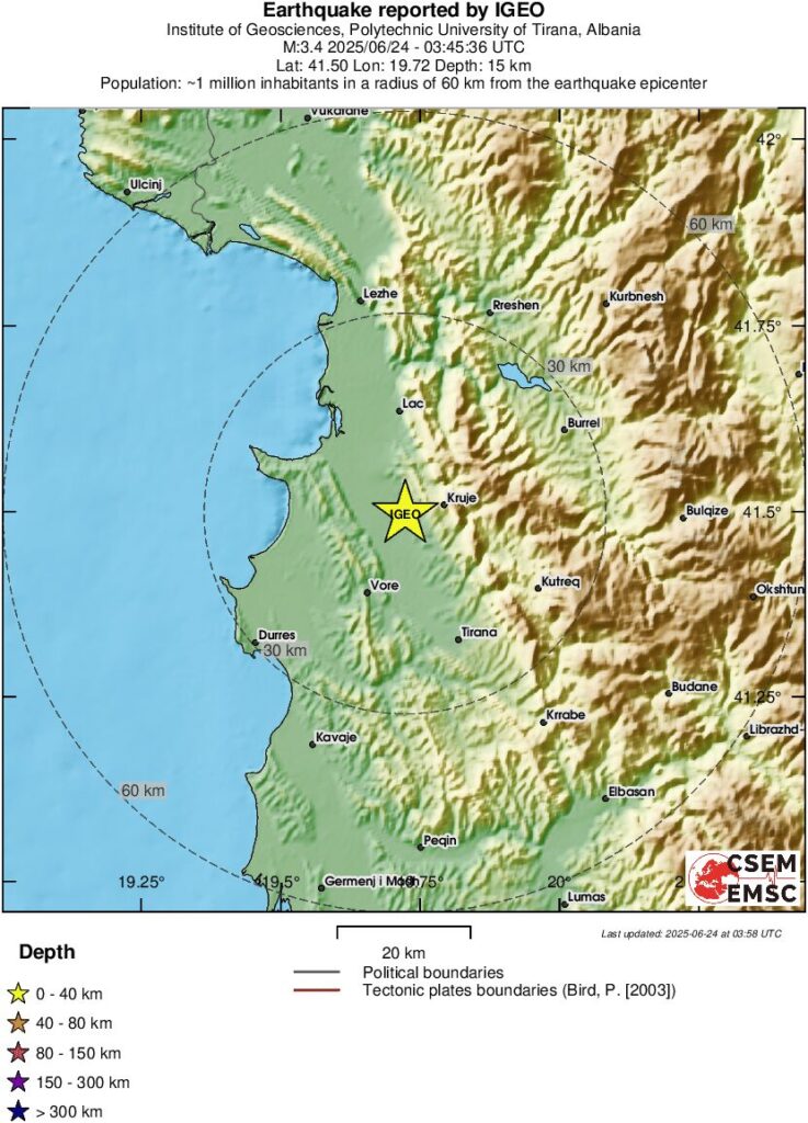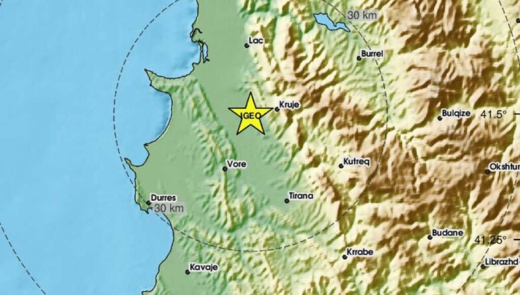 Epiqendra u regjistrua në Krujë me një thellësi prej 15 km.