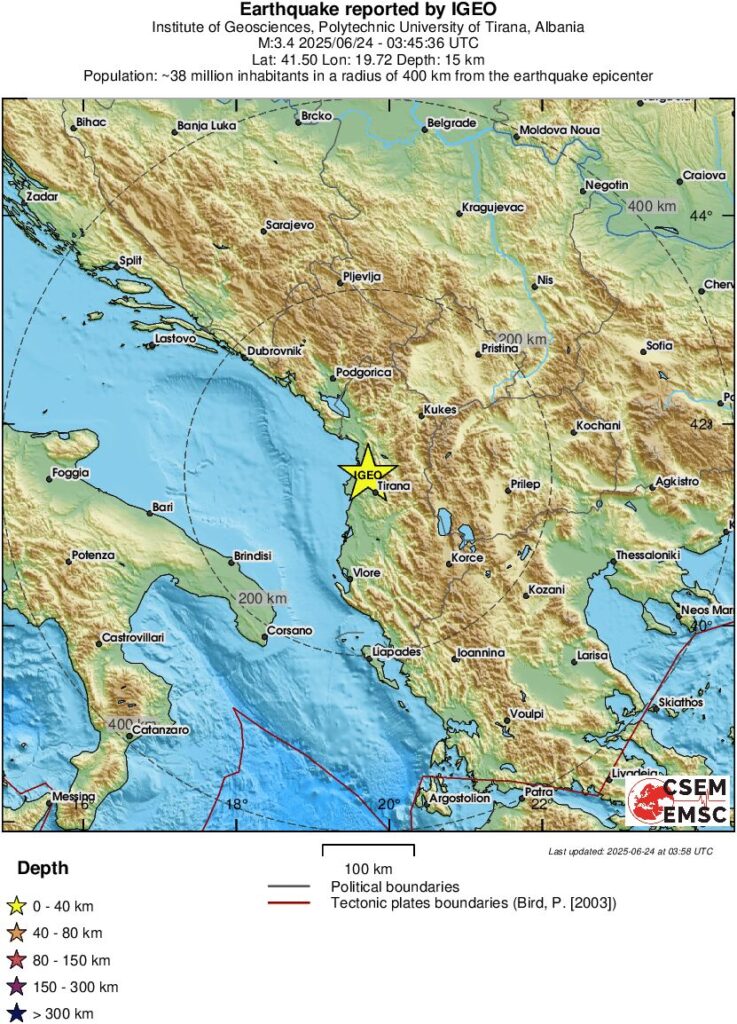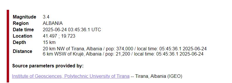 Nga të dhënat e para mësohet se tërmeti ka qenë i magnitudës 3.4 i Shkallës Rihter.